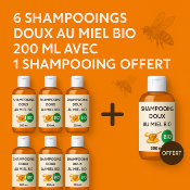 6 shampooings doux au miel Bio 200 ml = 1 shampooing offert