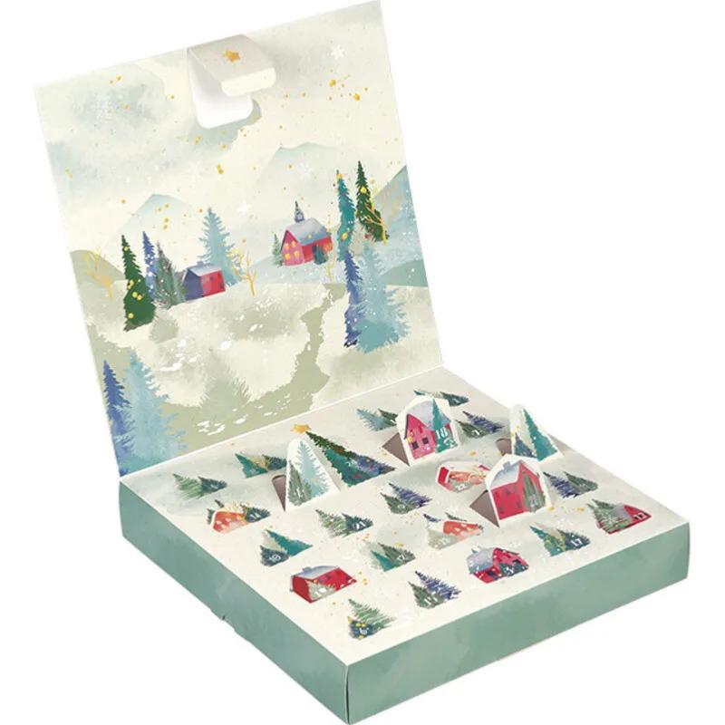 • Coffret Vide Carton Carré Calendrier De l'Avent Campagne Enneigée