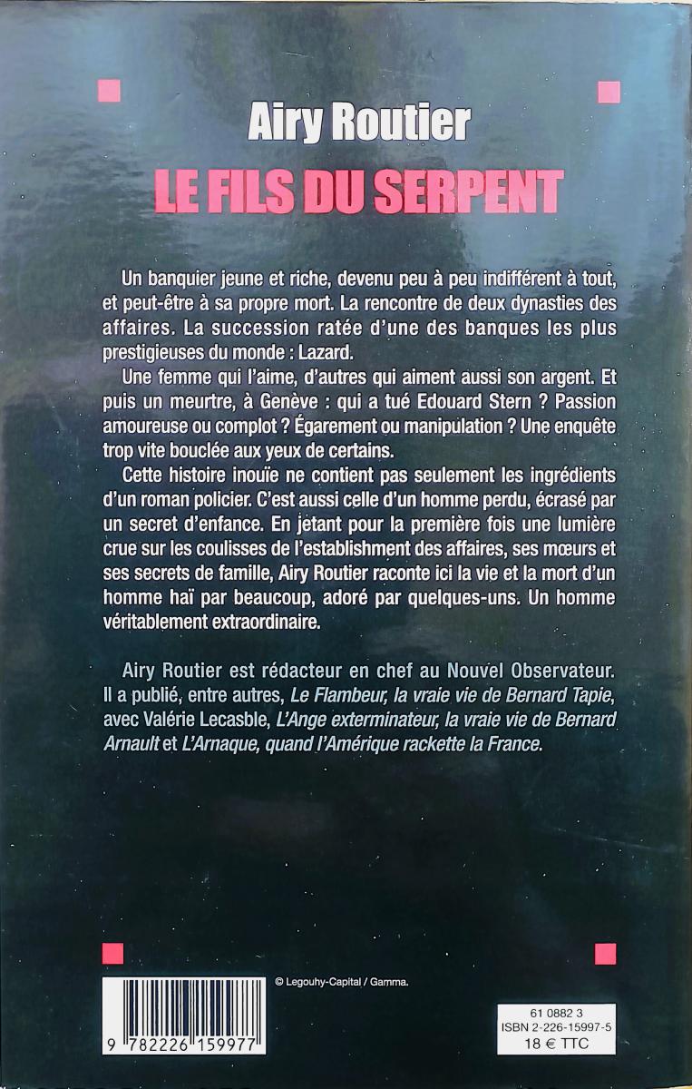 Ce livre le Fils Du Serpent c’est à la fois une enquête, une plongée dans les élites financières, et le portrait d’un homme complexe, adoré par certains, haï par d’autres. Livre d'occasion.