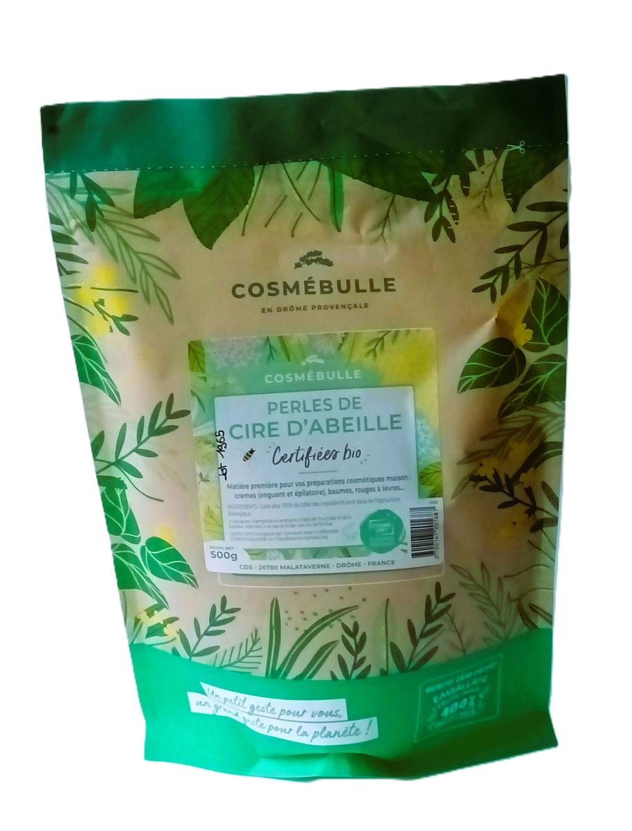 La Perle De Cire d'Abeille matière première pour vos préparations cosmétiques maison : crèmes (onguent et épilatoire), baumes, rouges à lèvres... Ingrédients cera alba, 100% du total des ingrédients sont issus de l'Agriculture Biologique.